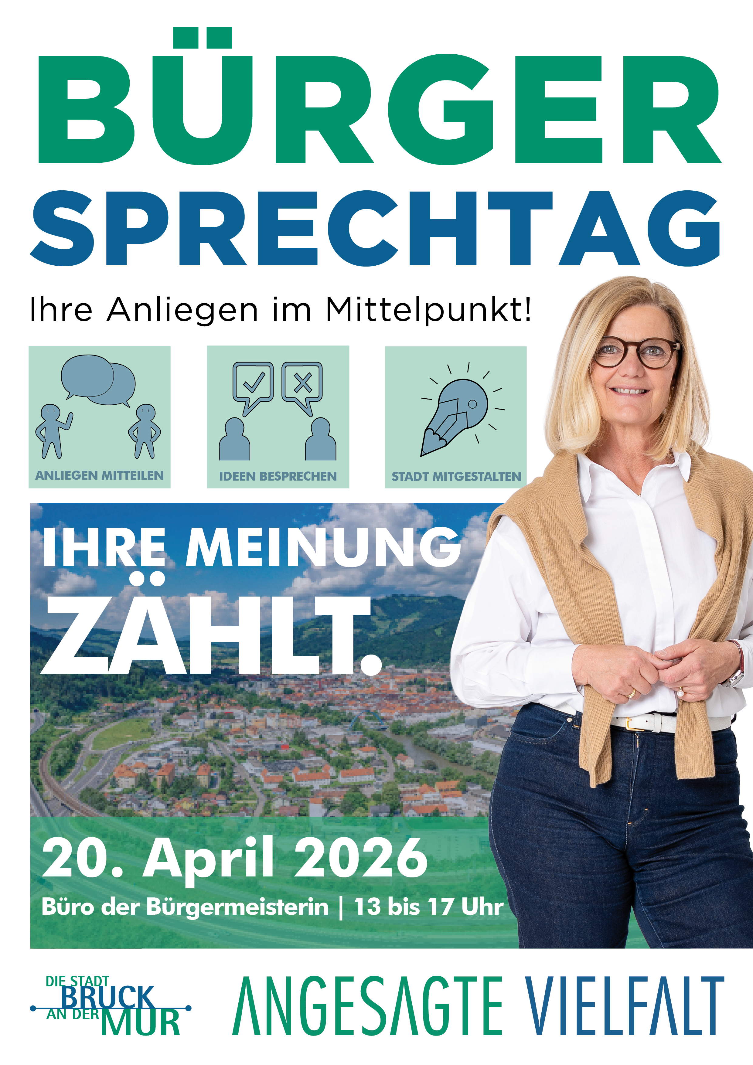 Bitte sichere dir frühzeitig einen Termin unter: Tel. 03862 890 1000 oder per E-Mail: buergermeisterin@bruckmur.at