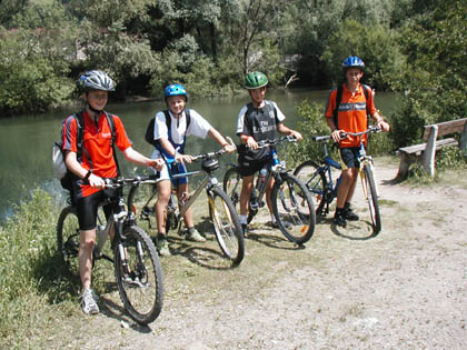 Die Moutainbikegruppe II auf der Zufahrt zum "Berg" entlang der Mürz.