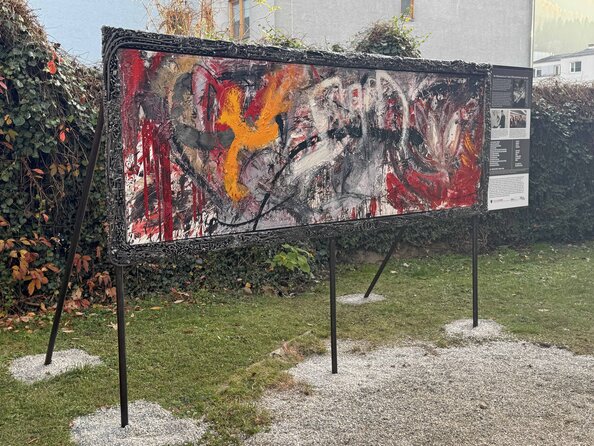 Neben einem Gedenkzeichen für die Todesmärsche durch Bruck soll das ausdrucksstarke abstrakte Bild im künstlerischen Metallrahmen mit erklärender Gedenktafel aber auch, im Gedenken an Emmerich Trummer, ein Ansporn für mehr Menschlichkeit, Toleranz und Zivilcourage sein.